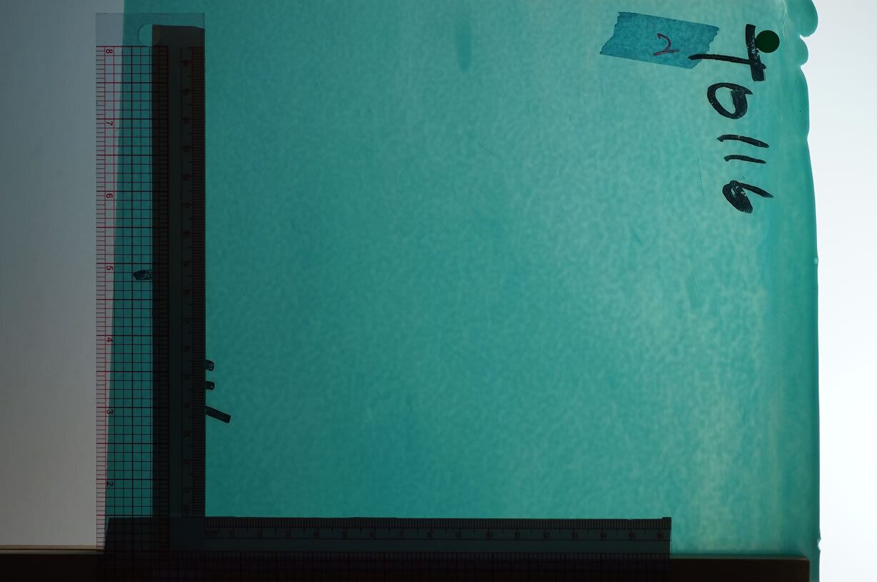 ブルズアイフュージング用板ガラス(2mm厚、薄板)の元板1/4サイズ(通常約21x24cm)です。