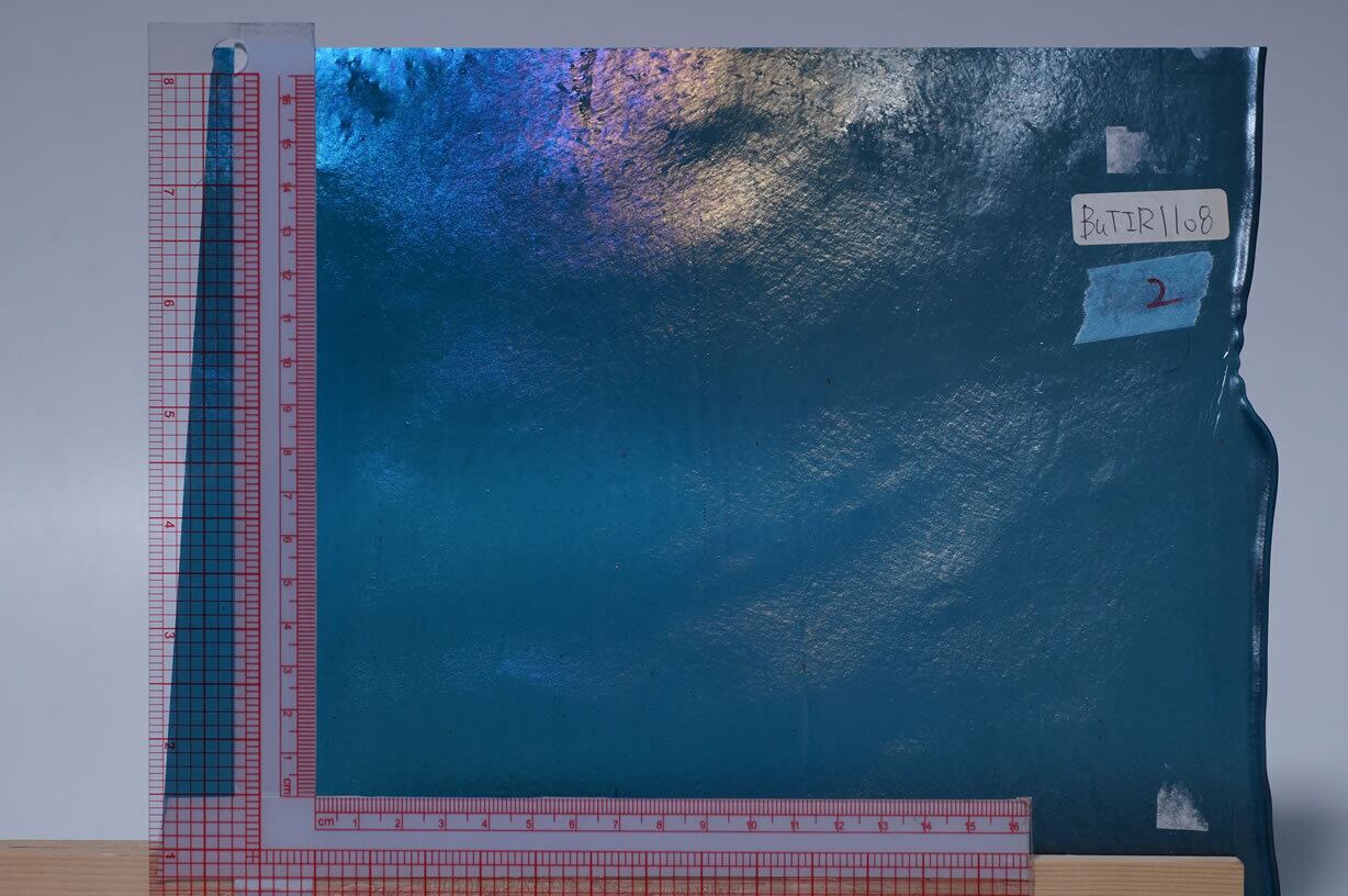 【現品限り処分・60%オフ】ブルズアイ2mm薄板ガラス「IR1108イリディセントアクアマリンブルーTP」