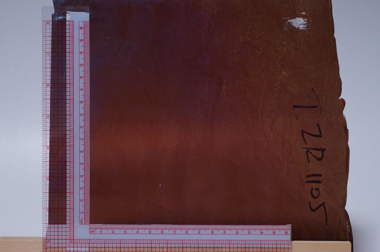 ◆イリディセントは光沢を生かしたデザインに使うほか、膜面側は離型剤がほとんど食いつかないのでファイバーペーパーなどを使う場合のベースガラスに最適です