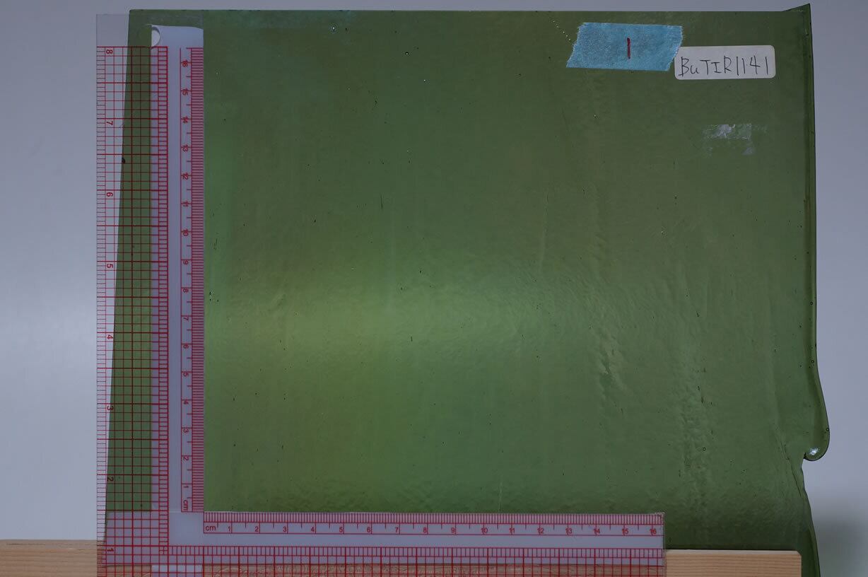 【現品限り処分・60%オフ】ブルズアイ2mm薄板ガラス「IR1141イリディセントオリーブグリーンTP」